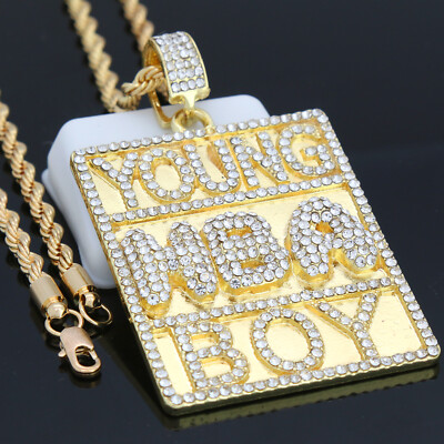Hip Hop 14k Gold Pt Cz Nba Young Boy Never Broke Pendant Rope Chain 24 Ebay